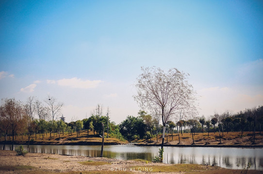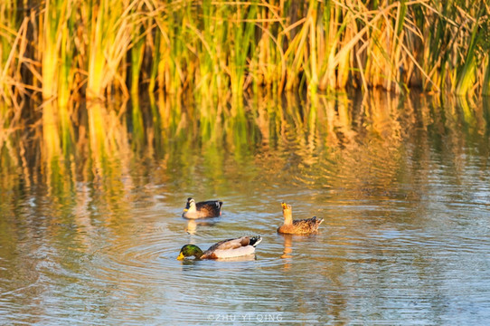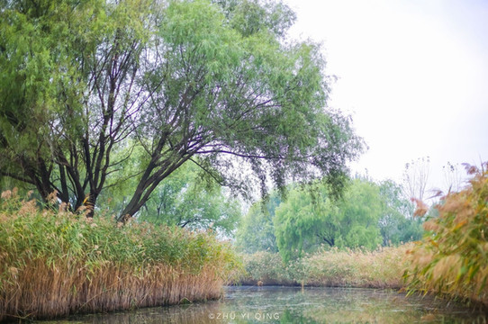 漫步在木栈道上,野鸭在水中扑腾,感受河边秋江水暖鸭先知的感觉。