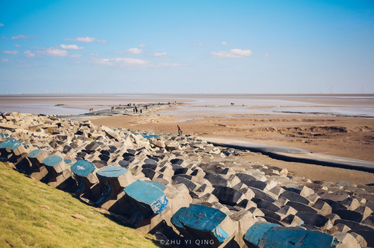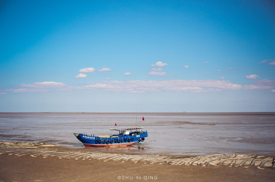 在条子泥呼吸着带着大海咸咸味道的空气,小船搁浅在岸边,如今还没到候鸟迁徙的最佳时节,所以滩涂上还是一面平静。条子泥滩涂有亚洲最大湿地和世界罕见的辐射沙脊群,等落潮时露出水面超过1平方公里的沙岛有50多个。