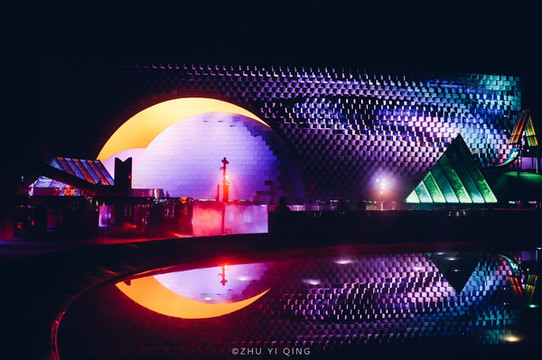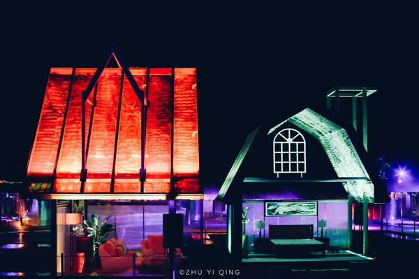 晚上的只有爱剧场外,一座虹桥跨越在合上,点缀着荷兰花海不平凡的夜色。