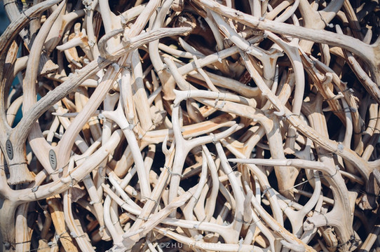 看这尖尖的鹿角,真是非常锋利,所以投喂的时候,千万不要逗它们太过分,不然它可是会用鹿角顶撞铁丝网的,一旦生起气来,它们还是很凶的。