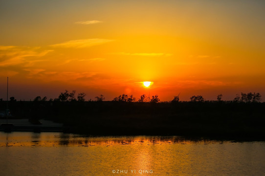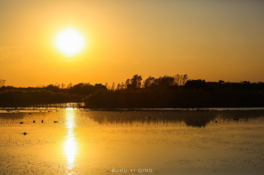 丹顶鹤生态园里的日落简直太漂亮了,像一颗咸蛋黄慢慢落下去,直至把天空都染成橙色。