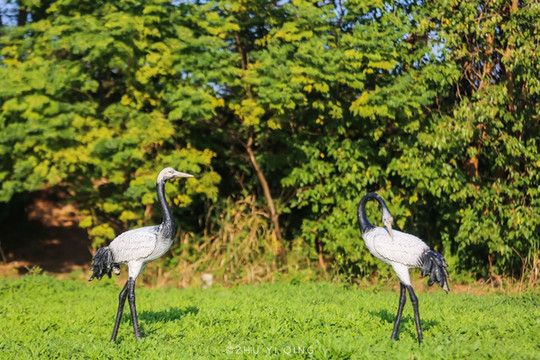 湿地生态旅游区里拥有独一无二的生态资源和排名全国前列的空气质量,是盐城乃至江苏的重要生态名片,享有国家重要湿地基因库的美誉,也是国际重要生物多样性富集的热点地区。在园区里随处都能见到与丹顶鹤有关的元素,细长的双腿,尖尖的嘴巴,让我更加期待见到真正的丹顶鹤。