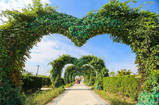 走入大丰的梦幻迷宫,仿佛就像飘荡在浩瀚无边的绿色海洋中,这里迷宫不仅是由树篱搭成的,目之所及的一切,比如这座心形长廊,也是由树篱搭乘的,穿过这座长廊,就会来到梦幻迷宫的核心位置。