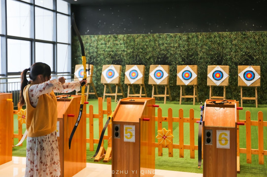 进入梦工厂里,玩的第一个项目就是射箭,这种射箭其实不难,初学者也很轻易上手,只要掌握正确的拉弓姿势,瞄准前方的靶心,来个百发百中也不是不可能。