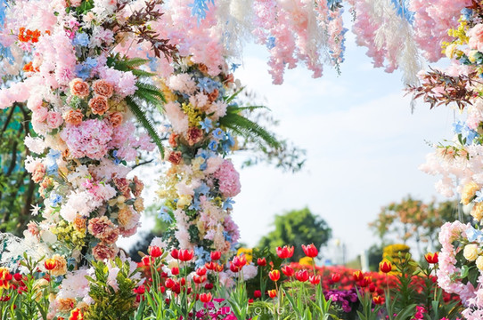 荷兰花海中还有非常多的拍照道具,妥妥能让你拍出网红大片,欧式风情的城堡,象征爱情的心形、花环,种种元素搭配起来,和花海的美丽相得益彰。当俊男靓女们走在花海中,整幅画面也十分地和谐。