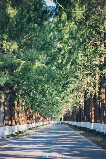 绵延不绝的森林大道,两旁的树木高大的将天空都遮住了,树荫下的路面在阳光的映衬下,简直美得不行,在充满大自然的马路上拍照,还愁拍不出森系风的照片吗?