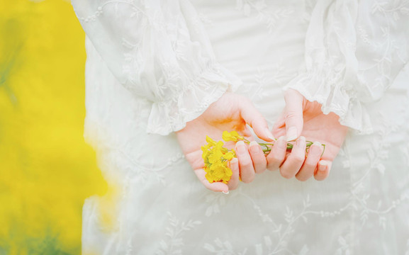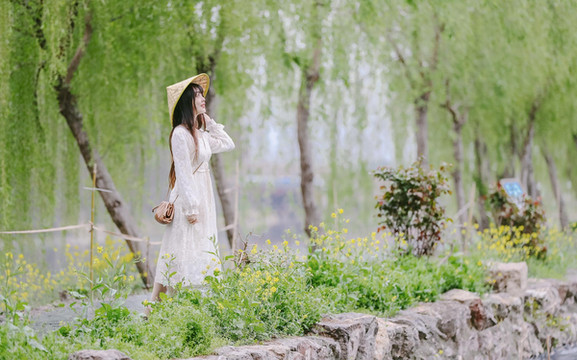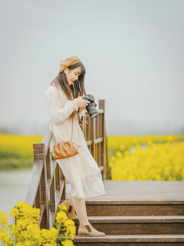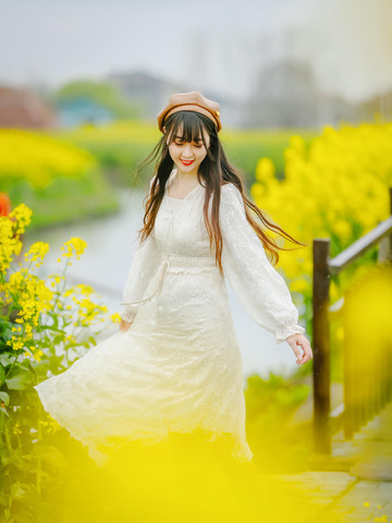 朵朵金花如云霞般,风风火火漫向天涯,身着白裙,漫步于花海间,似乎怎么摆着pose,都美成了一幅画!和着阳春三月的微风,摇曳多姿,迎来蜂蝶飞舞,让人迷醉。