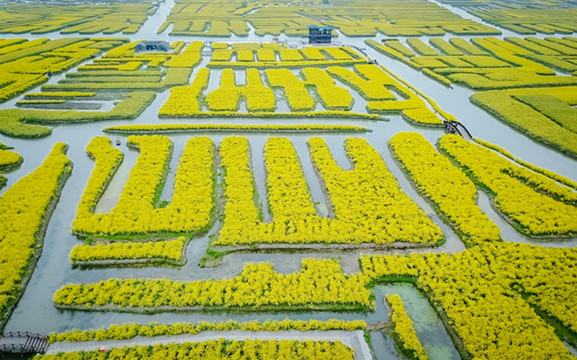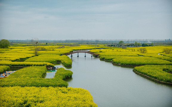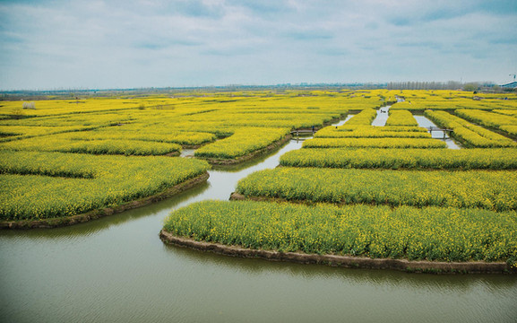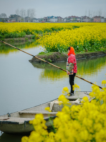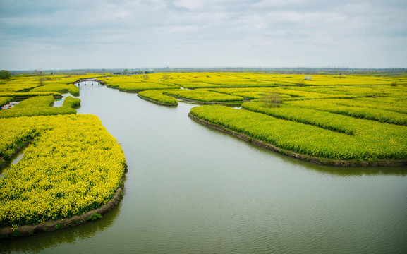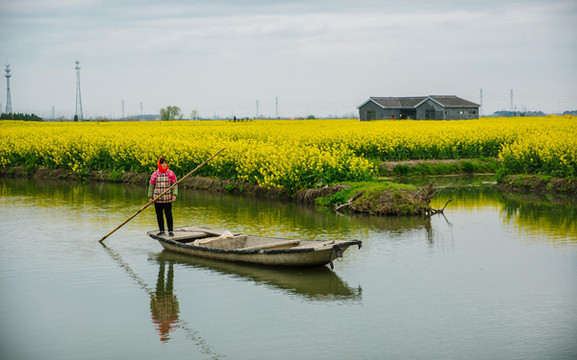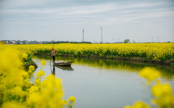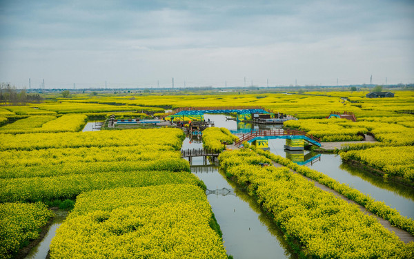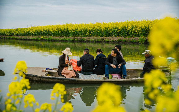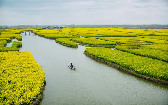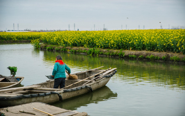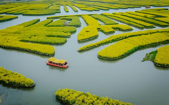 若是说起最佳的观赏方式,那便是乘着游船,深入花田中心,在迷宫一样的菜花间摇晃,悠然地穿梭于繁花遍野的“岛屿”之间,近距离的置身于花海里。