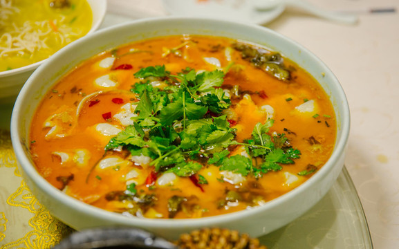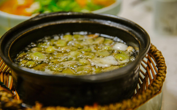 说实话很少看到这样端上来一盆滚烫的蚕豆汤,但是品尝起来蚕豆清香,鲜嫩正当时,吃到嘴里入口即化。