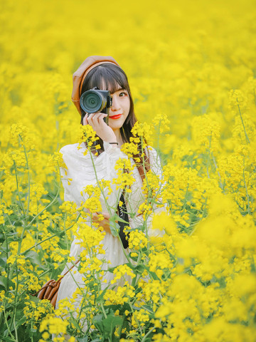 花海人像:油菜花海比较大的话,特别适合拍出置身其中的花海人像照片;