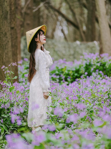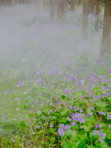 身着一袭白裙步入其中,呼吸着大自然的原始气息,伴着森林中各种珍稀鸟类发出的声音,慢悠悠的漫步在林间,仿佛穿越到了东南亚,光晕、雾气夹杂着参天大树边盛情开放的二月兰,仿佛一不小心,就踏入了现实版的绿野仙踪里。