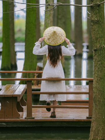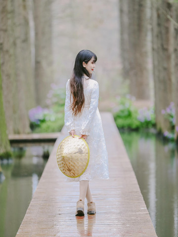 以前对越南的印象便是他们的斗笠,这次因为躲雨带起了斗笠,朋友戏谑的说我好像越南的小姑娘,白色的棉质长裙与奥黛莫名的相似,如此一来,竟仿佛穿越到了越南的热带雨林里。