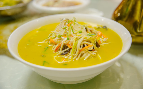 大煮干丝,又称鸡汁煮干丝,也是淮扬菜里最经典的一道,似乎顿顿都会见到它的身影,吃起来爽口开胃,异常珍美,百食不厌。