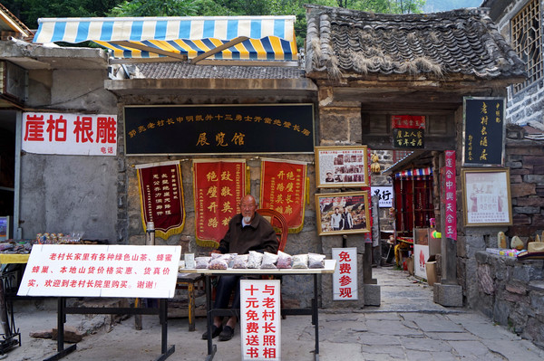 这个老供销社是岳家寨的一个招牌看点。小店的主人岳晚增夫妇是县里的老先进,满墙的奖状记录了他们50多年的人生轨迹。小店代购代销的使命早已终结,目前的作用是展示为主、售卖为辅。岳晚增老人的这幅照片,是一个摄影师的获奖作品,老人十分喜爱把它挂在了墙上的显著位置。