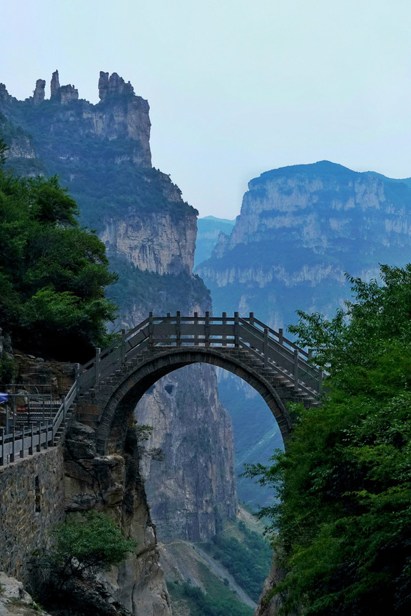 今天的旅行从清峰关开始,围着老爷顶半山腰步行旋转8公里,360度欣赏太行美景,驱车通过第7条挂壁公路——最为华丽的回龙挂壁公路,在八里沟弃车徒步,造访山西唯一不通车的太行空中驿站——抱犊村。