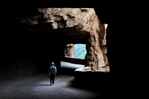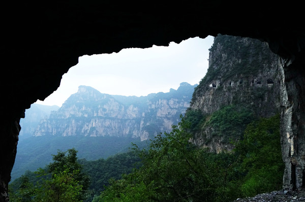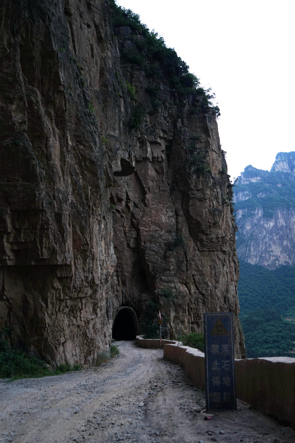 终于见到了虹梯关挂壁公路的洞口,百丈高的绝壁,漆黑的洞穴,令人不寒而栗。