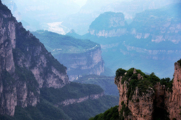 今天的旅程,先是在河南瞭望山西挂壁,然后驾车穿越第4条挂壁—最具颜值的陈家园挂壁公路,最后登上王莽岭,欣赏晋豫边区绿海簇拥的峰峦叠嶂。