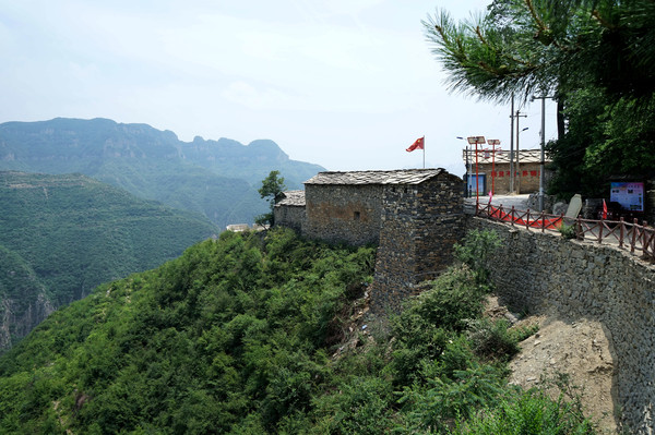 虹梯关是一条东出河南的晋豫古道,历史上曾是骡马驮队的商贾通道,也是据险扼守的军事要塞。据说当年日寇至此察看地形,仰望峻岭也是望而却步,少数意欲攀登者,也被民兵滚石一砸就抱头鼠窜。如今的古关已经沉睡,它的通行功能已被前方的挂壁公路所替代,变成了一条怀古健身的步行游路。关寨虽然插满了旌旗,但鲜有人员探寻,我们急着赶路,暮色中也是匆匆路过。