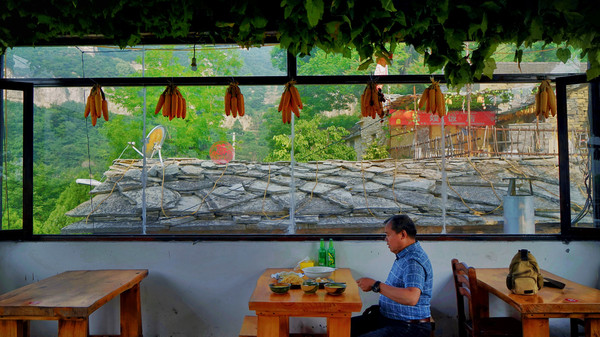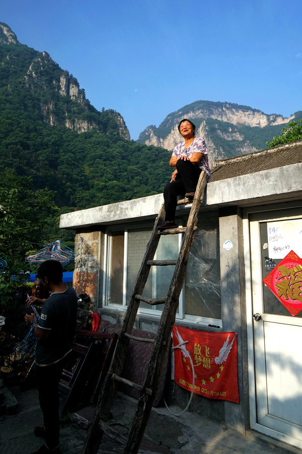 这是村民老姬的家。老姬是个能人,十几年前举家迁户至河南平原置地购房,这几年抱犊村突然火爆,穷山村成了骨灰级驴友户外穿行的空中驿站。老姬审时度势,毅然重返大山,在把自家几间石头房子收拾一番,做起了客栈老板。