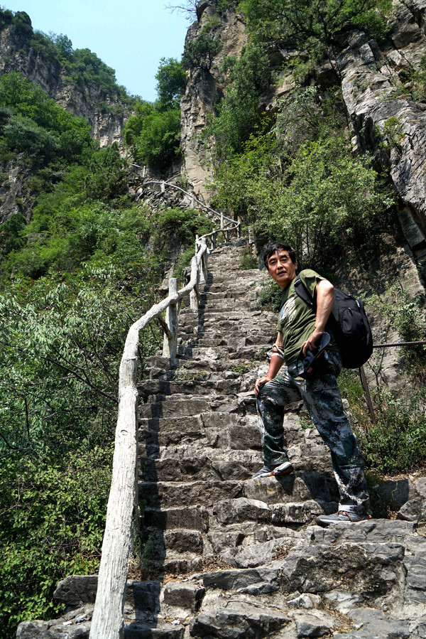 今天要当一次驴友,去爬穽底人过去的出山道“哈楼梯”,体验山里人无路的艰辛;徒步通过穽底壁挂公路,观赏洞窗画框中的太行图案;驱车前往张家凹,登上太行之巅,遥望东方的华北大平原。