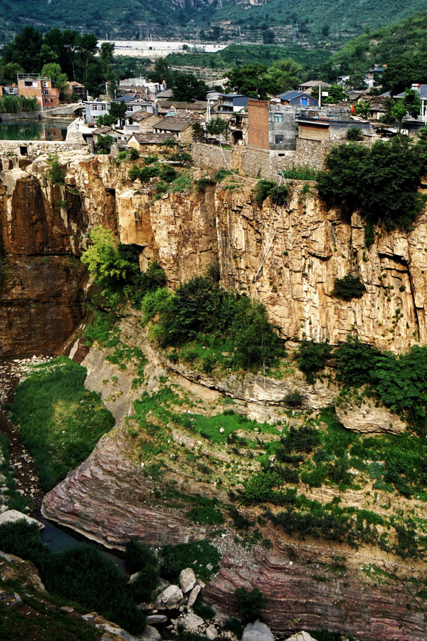 村头的老龙口是沿途最重要的景观之地,云水光影配合好了可以拍出风光大片。它的下方是百丈悬崖,雨水季节漫流的山水会在这里收缩水口,咆哮着冲出丹崖泻入河南。这里是观赏瀑布的地方,在悬崖的对面可以看到瀑布高悬、似挂九天的壮阔景致。
