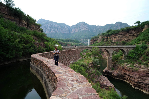 人们都知道河南林县的这个壮举,但大多数人不知道红旗渠的渠首和二分之一的总干渠却是在山西长治的平顺。当年河南林县杨贵书记带领数万民工劈山开渠,住的是山西的农家,凿的是山西的山岭,分流的也是山西境内的浊漳河水。红旗渠的渠首在平顺石城的侯壁断下,林县人在那里设坝截流,将漳河水引入了红旗渠。我们走上渠坝,一边是红旗渠渠水、一边是十余米深的浊漳河,虽然红石砌成的渠坝异常坚固,但走在长长的渠坝上,还是有点双眼发眩、双腿发软。