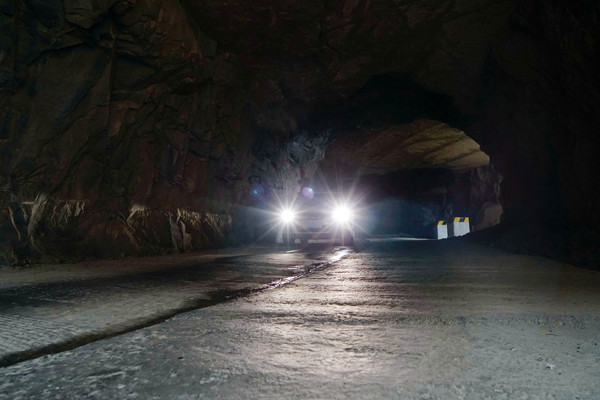 换个角度观望,昆山挂壁像是山体上被刀割出的一道痕迹,一辆辆吉普车正在准备驶向昆山。