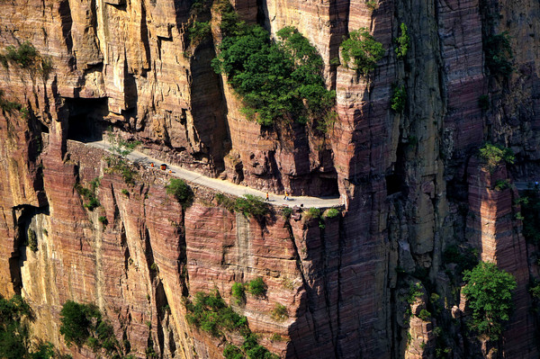 高山之巅的郭亮人,自古都是出行走羊道,上下攀天梯,世代饱受路塞之苦。到了1972年,由13壮汉组成的突击队,面壁举拳,发誓要凿穿绝壁。村里人卖掉了山羊、山药,换购成了钢钎、铁锤,他们挥锤打纤、凿石开洞,硬是在红石崖上打出了一条绝壁长廊。
