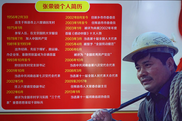 当年已经积累了巨大财富的张荣锁上任村支书,决定要用自己的钱给山上的群众修路。他带领村里的四百壮汉,在崇山峻岭穴居三年,终于在绝壁上凿出了1公里的“S”型隧洞和8公里的盘山路,回龙精神名扬四海,张荣锁书记享誉全国。
