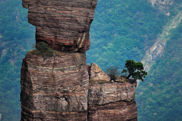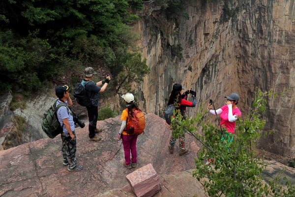 终于见到了几位游人,他们是对大山情有独钟的专业行者,站在崖边显出的从容不迫。