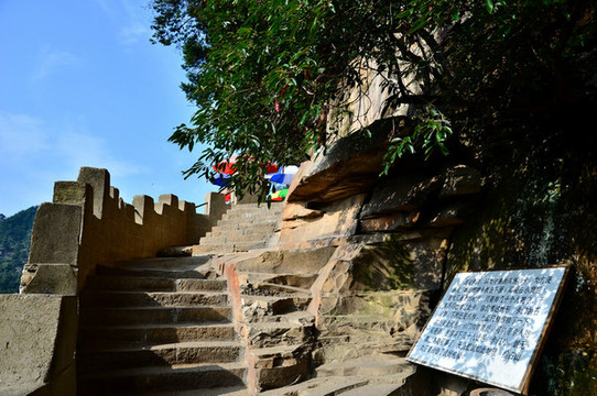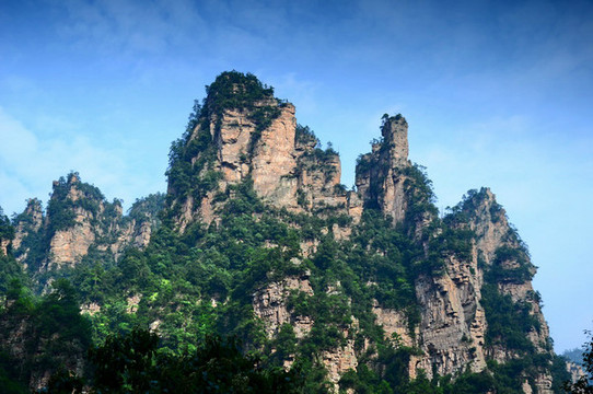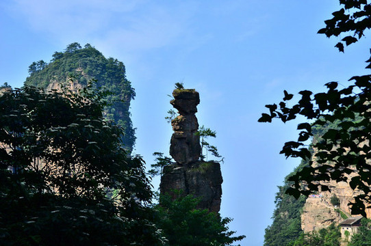 11.点将台:与“神堂湾”在同一方位,此处山峰有的似玉柱神鞭,立地顶天;有的像铜墙铁壁,巍然屹立;有的如晃板垒卵,摇摇欲坠;有的若盆景古董,玲珑剔透……令人留恋忘返。