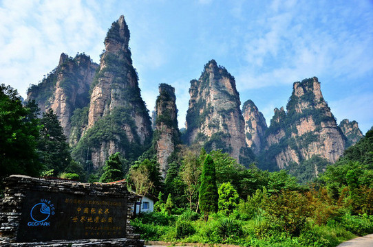 接站后导游带我们坐空调旅游车(可沿途欣赏40分钟的湘西田园风光)后直接从森林公园门票站进入景区游玩(门票248元已含);徒步游览“世界上最美丽的峡谷”---金鞭溪景区,(包含观音送子、猪八戒背媳妇、神鹰护鞭、劈山救母、西游记外景拍摄地、长寿泉、千里相会等景点)。走完金鞭溪后,有两种游览方式上至山顶的袁家界景区(其一:可从金鞭溪的千里相会从乱窜坡徒步上袁家界,其二:可从水绕四门乘坐环保车至百龙电梯下站,然后乘坐世界户外第一电梯至山顶的袁家界)。
