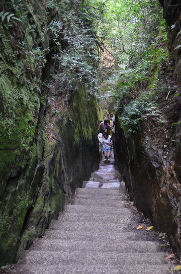 4. 天子山景区的一步难行:真险真刺激,因为要从两个石峰上一步跨过去!两座石峰相邻形成石缝,石缝下面就是万丈深渊。据说以前就有游客一步失足葬身此处!自此也被加了铁丝板。虽然没有了原始的那份惊险与刺激,但仍能从脚下的铁丝网中依稀探寻到当年的踪迹。(现在两个石峰之间已加了栏杆,危险性大大降低了,只是一低头,下面就是万丈深渊,还是挺刺激的)