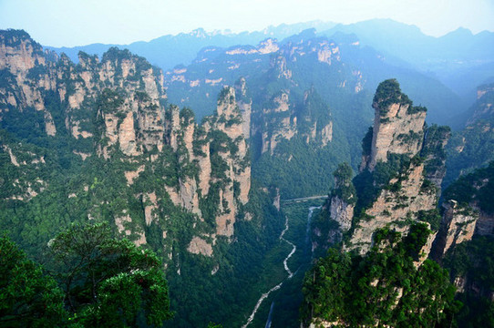 13.天子观景台、云青岩、画中游:在天子山景区。是张家界四大奇观(日出,峰林,冬雪,雾海)之一-------峰林观赏点,此处峰林别于其他景区,被称为“放大的盆景,浓缩的仙境”,它神奇而又真实,迷离而又实在,不是艺术创造胜以艺术创造,令人叹为观止。此景区开发较早,是旅游团队必经之路,游客蜂涌而至。