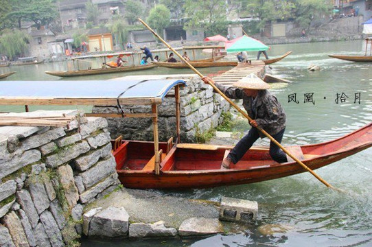 看这船也在这静待着尼,沱江水的清,沱江水的静,再加上蒙蒙的雾气构成了一幅绝美的自然风景画!让人留恋忘返。上午在古城逛了会,十一点多踏上回家的列车,结束了我们这次的完美之旅!本人文采不好,只是记录一些,纯当是记忆吧,这一趟玩下来总的花费不超过两千每人,选择自助游还是很不错的,我想我也要爱上这种自游自在游玩的另类旅游方式了,觉得出门在外的话还是有必要找个导游,可以帮你讲解景点,讲一些当地民俗风情很是有趣,到一个地方就是要了解一下当地的风土民情,这样也就不虚此行咯,嘿嘿,这次旅行总的来说是非常开心的,不过从行程策划一直到走完这些美景一路都有他的帮助,导游小桥人很开朗,很实在!把我们的旅程安排得很好,大伙如果想去的话可以找他团队做向导,可以直接搜索“张家界剑桥自助游小桥”就可以看见他的网页,回程还是说一下,万一有成都的朋友呢,可以考虑这个方案。