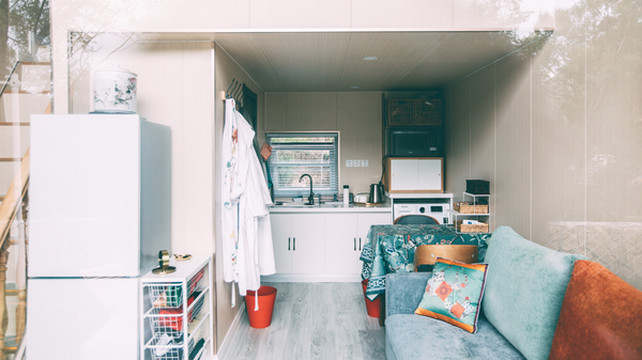 loft两层小屋更是从生活用品、厨房用具到洗漱用品一应俱全,像家一般温馨。物品整齐有序的摆放着,可以随手拿起一本杂志翻阅,也能窝在软软的沙发上,或者一起做顿简餐,在这座小屋里找回家的归属感。