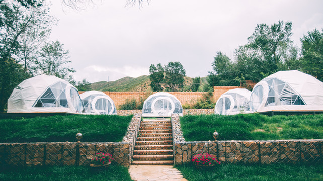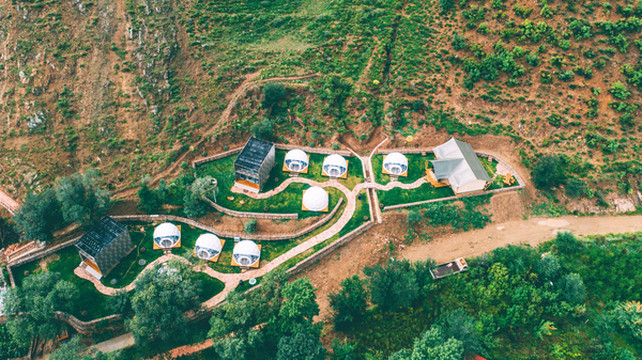 半圆形的观星帐篷像花朵般散落在院子之中, 这里既有浪漫到极致的观星帐篷,还有舒适的loft,民宿有了新的可能性。清新自然的格调,讲究精致的细节,来自华尔道夫的超五星级规格的床品,带来的是一夜好眠,绿滟田舍乡居成为了这里一个温暖的所在。