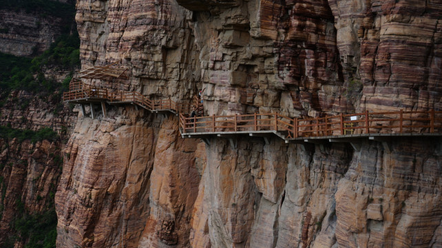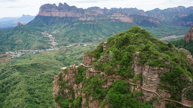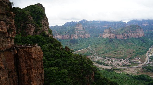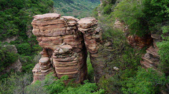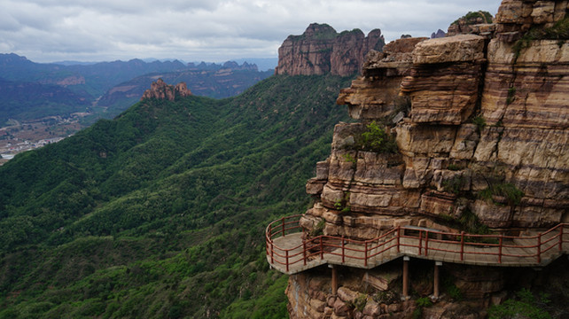 此处的山体是距今14——18亿年的红色石英砂岩,以嶂石岩地貌景观为主要特征,集雄、奇、险、峻于一体的山岳型自然风景区。游走在此步步惊心,大快朵颐。
