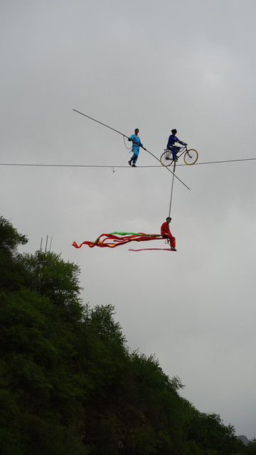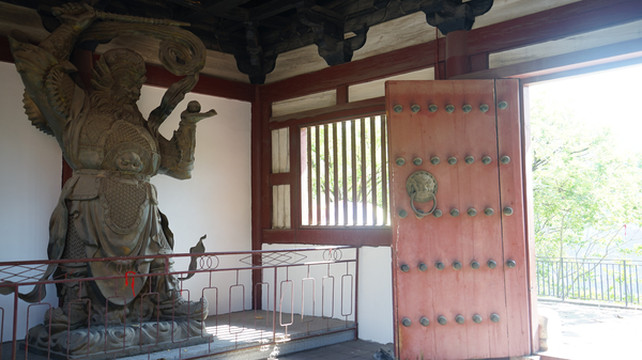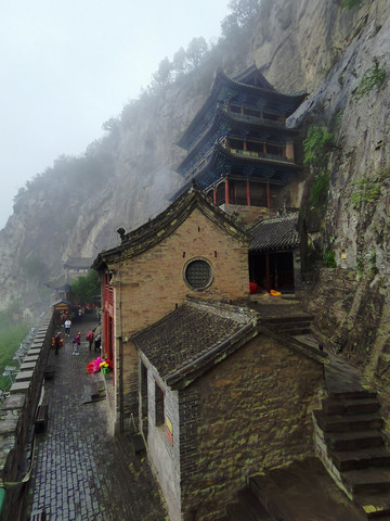 此楼为“活楼吊庙”,用9根铁索固定,登最高处楼体晃动。