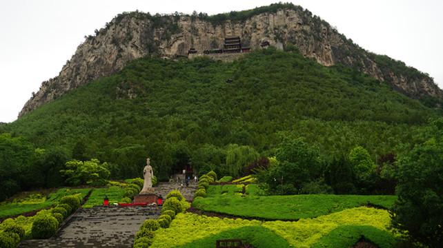 在旧址的小镇用过中餐,我们再到不远的另一个5A景区游览。这就是《娲皇宫》,一个美丽传说地方。相传远古时,女娲在此“抟土造人,炼石补天”。八千年来,女娲文化在这里孕育而生,派就出了北齐石刻、唐代题记、宋代砖墙、明清建筑等遗址。成为中国五大祭祖圣地之一。