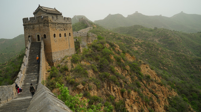 寨墙蜿蜒于悬崖峭壁之上,远观非常险峻。