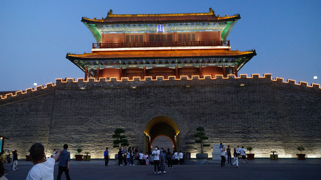当天赶到正定,打车到滹沱河(正定有区域限行),再到南门。此时夕阳西落,城楼华灯初上,正定美丽的夜景终于如愿以偿。