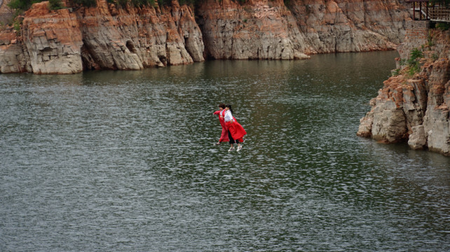 下午3时许,游客中心汇合后,再驾车到附近的《京娘湖》景区。玩山还得玩水!