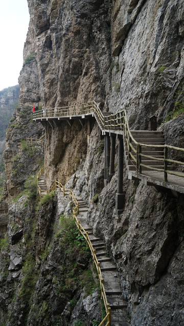 抱犊寨主要景色是蜿蜒在峭壁上的寨墙,全长约2公里,从上面远望,燕赵大地尽收眼底。