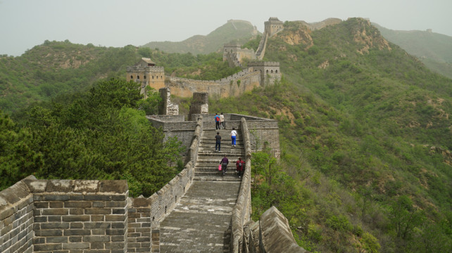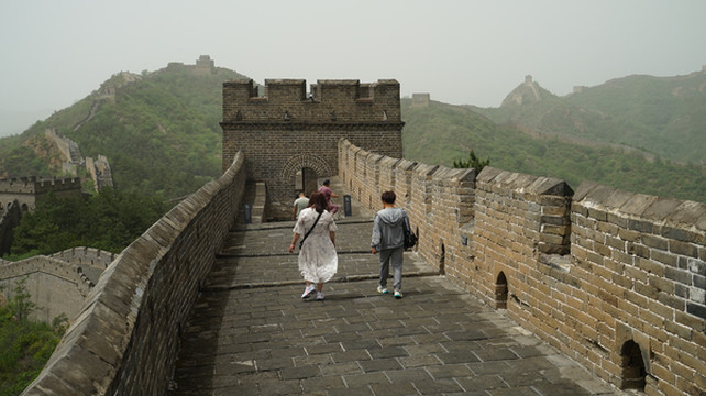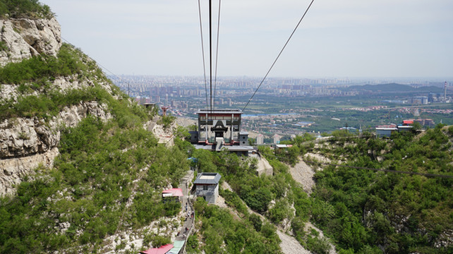 我们先40元乘箱式缆车到南天门,然后沿长长的城墙到金阙宫,再到牛郎织女家,穿过树林再回到南天门。