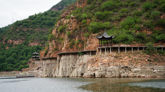 京娘湖的名称源自宋太祖赵匡胤千里送赵京娘的故事。景区实际上就是在峡谷中筑起大坝,形成了如三峡的水库。这里峭壁高悬,沟壑深谷,加上高峡平湖,碧水丹崖,景色自然非同一般。