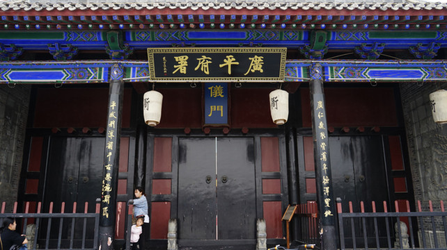 古城很大,且还在维修中,我们是坐观光车,前往第一景点“广平府署”。它是在原址上重建的,占地5.3万平方米,建筑5600平方米,有大小院落19个,房屋160余间。我们去时正碰上有剧组在拍戏。