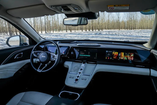 满油满电出发后,三个人一路向北,车外温度随着海拔逐渐降低至零下十几度。车内温暖如春,米色的内饰在阳光的照射下显得非常高档。我坐在后排,感觉这车的腿部空间简直可以和我老板的那辆德国豪华车的后排有一拼,2.8m轴距后排腿部空间绰绰有余,而且座椅靠背柔软之中带有韧劲,长途奔袭,可以给乘客恰当的背部支撑。