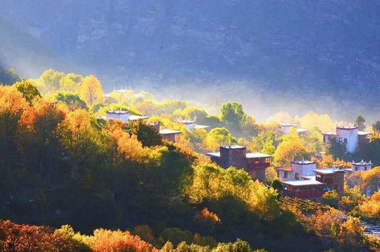 这里不是婺源,却有粉墙黛瓦的古村落,不是张家界,却有犹如鬼斧神工的险峻山峰,不是九寨沟,却有不输绚烂五色湖的秋色。