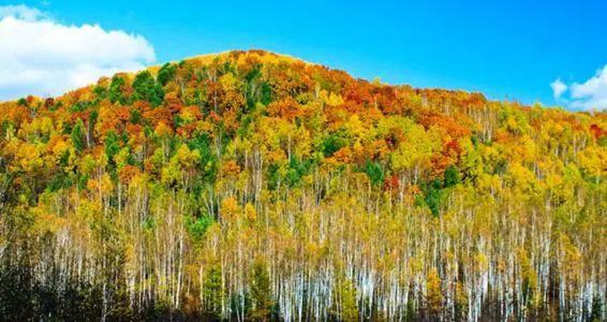 一叶知秋,十月,伊春便成了一个多彩的世界,连绵起伏的群山层林尽染、色彩斑斓。